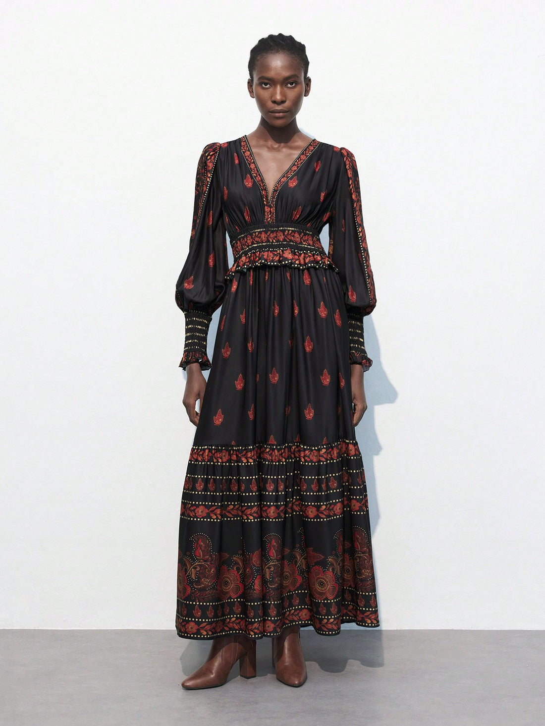 Zara inspired Women’s black floral waisted dress