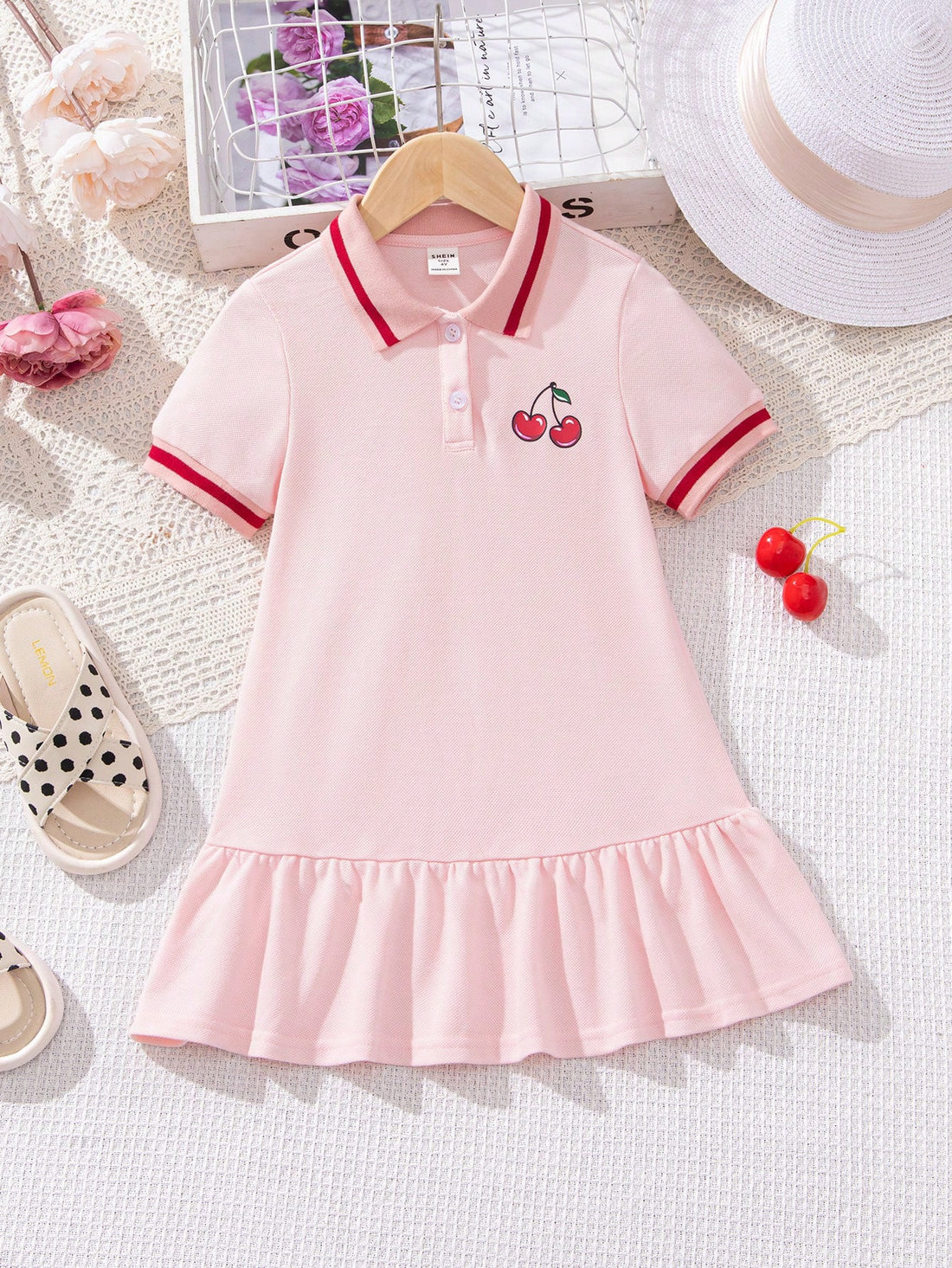 Young girl short sleeve cherry dress