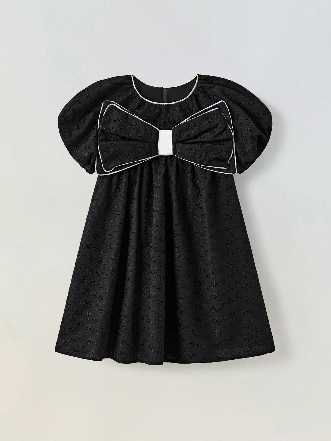 Zara Inspired Kids Young Girl Round Neck Puff Sleeve Dress With Bow Decor