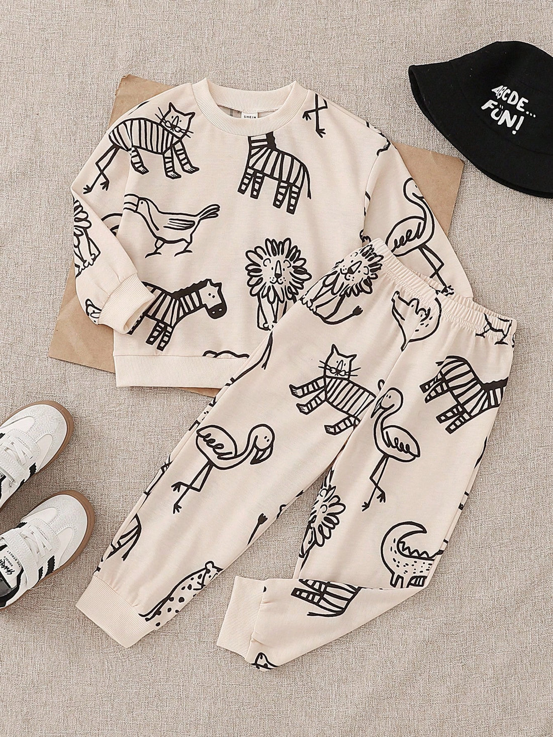 Animal print sweatshirt and sweatpants set