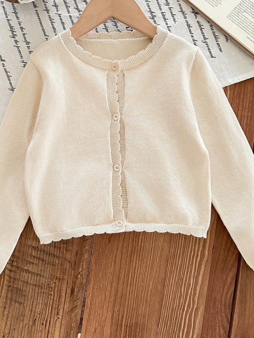 White Young girl thin pointelle knit cardigan