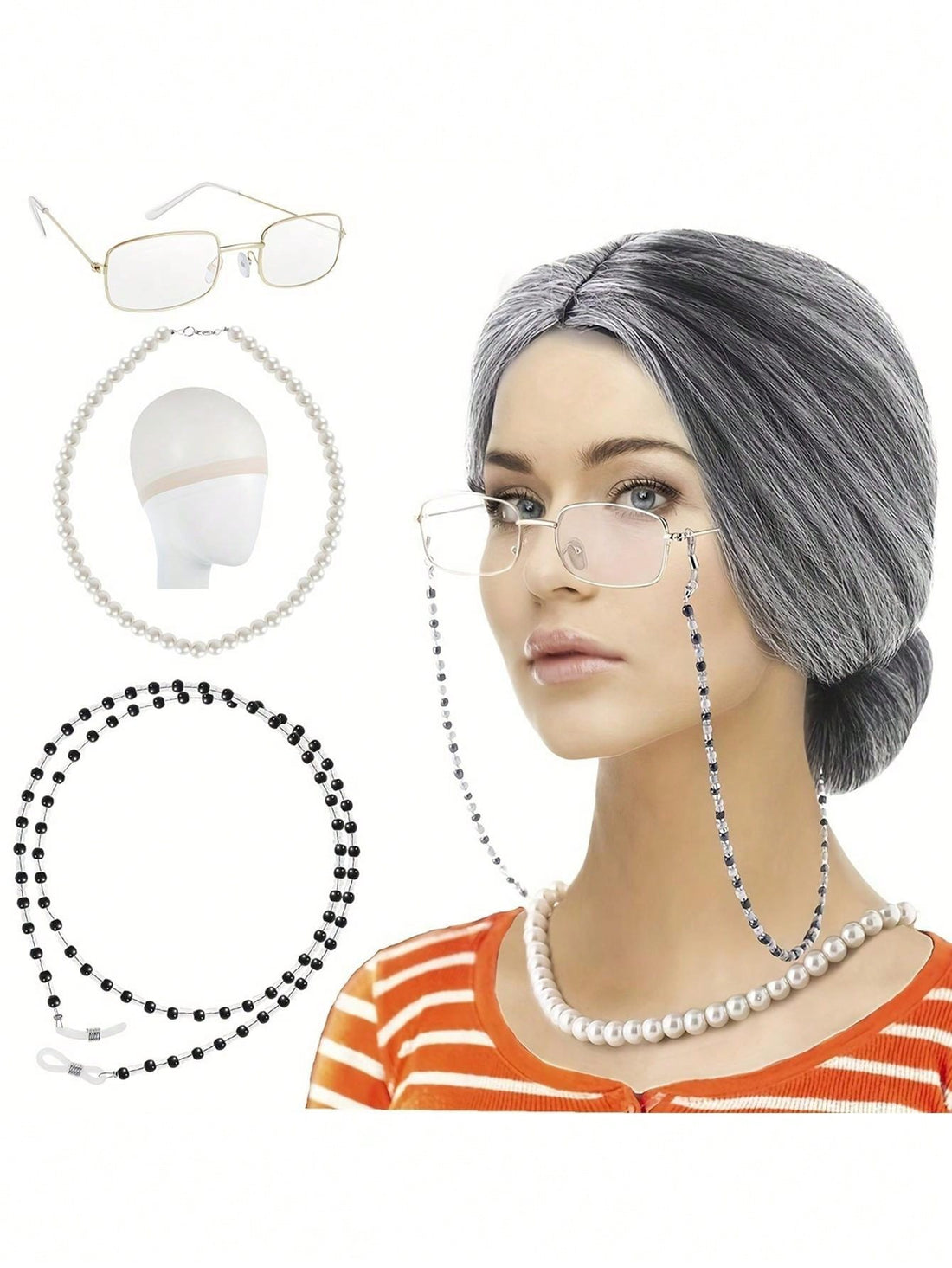 Old lady wig costume set