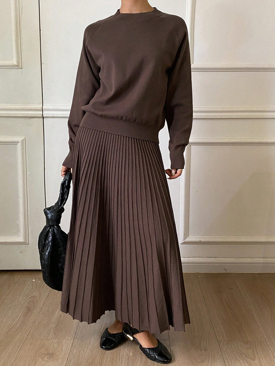 Brown sweater and knit skirt set