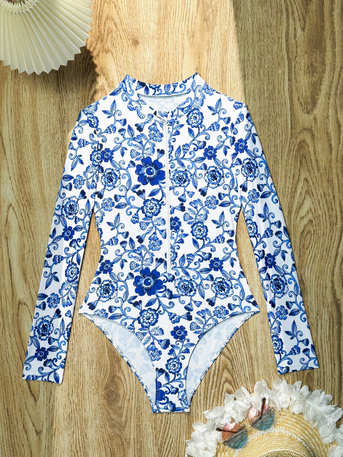 Blue Pattern Women’s long sleeve swim top