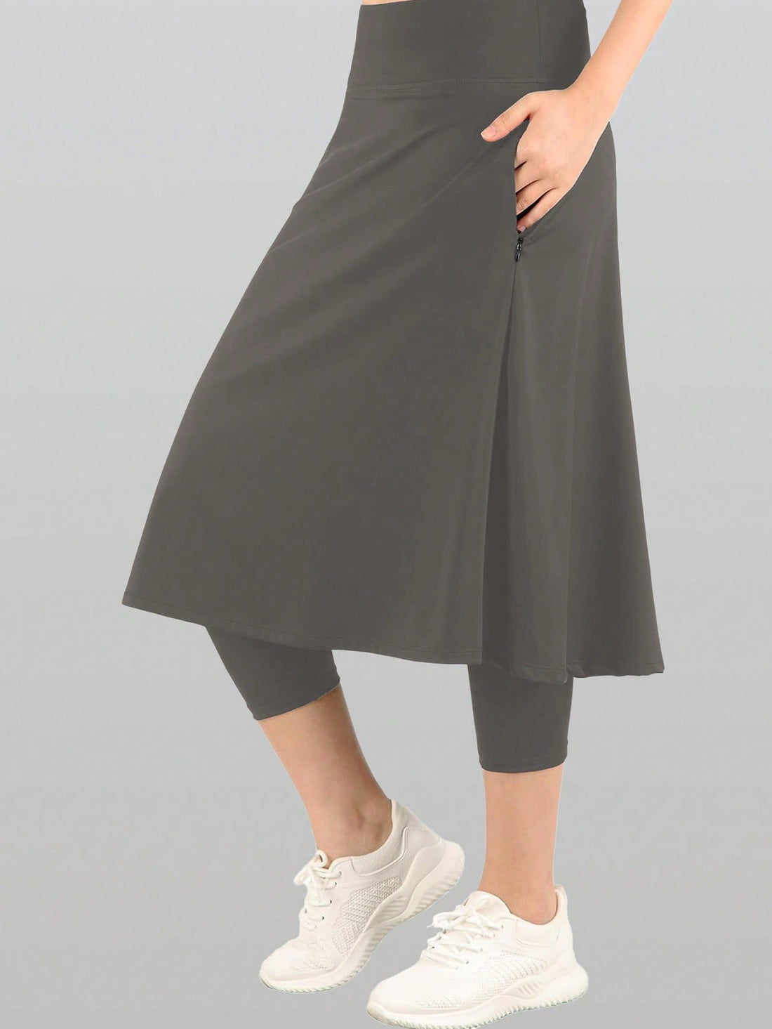 Grey Workout or Swim Skirt with Leggings and side pockets