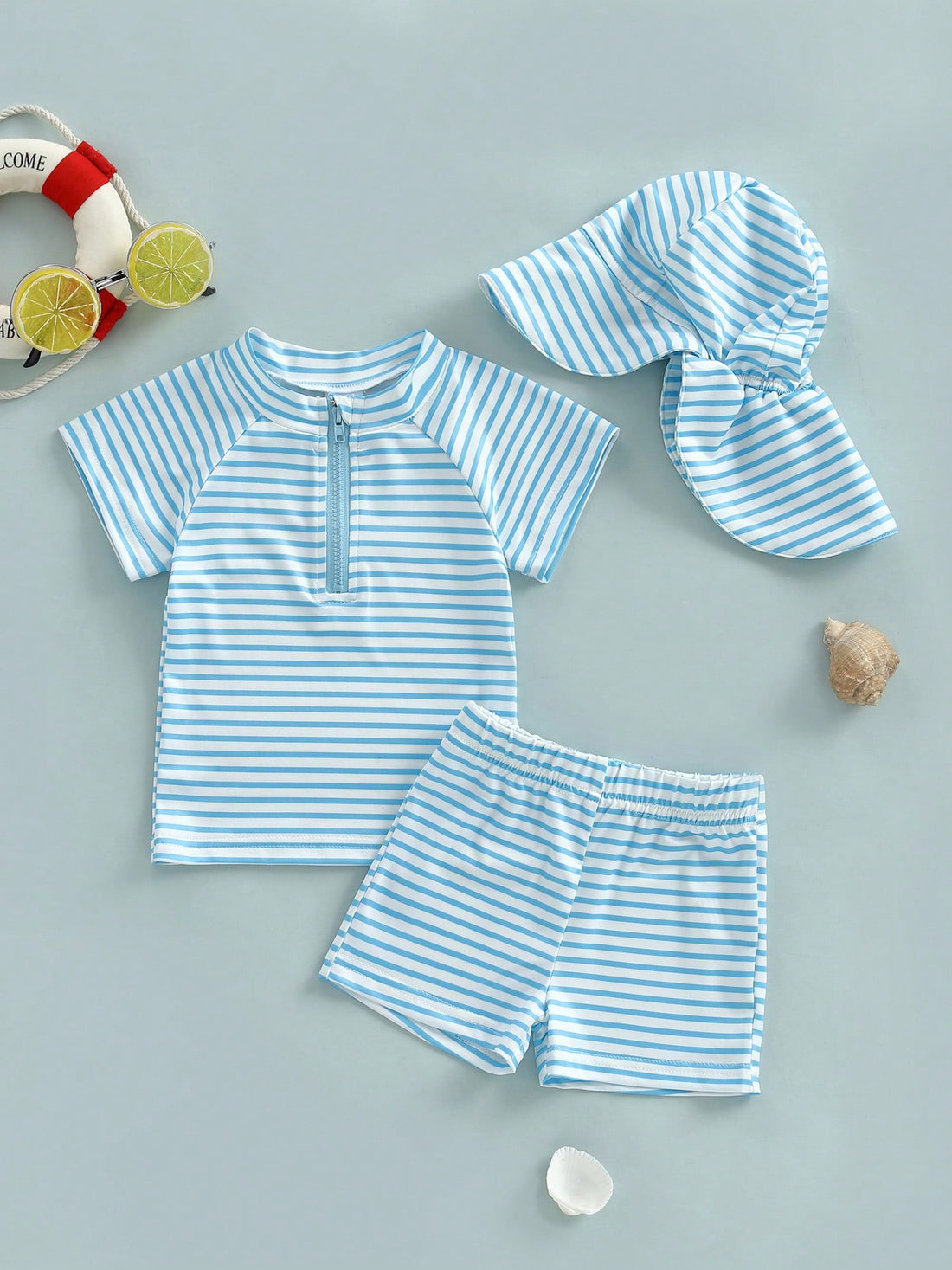 Blue Boys Rashguard and striped Shorts set
