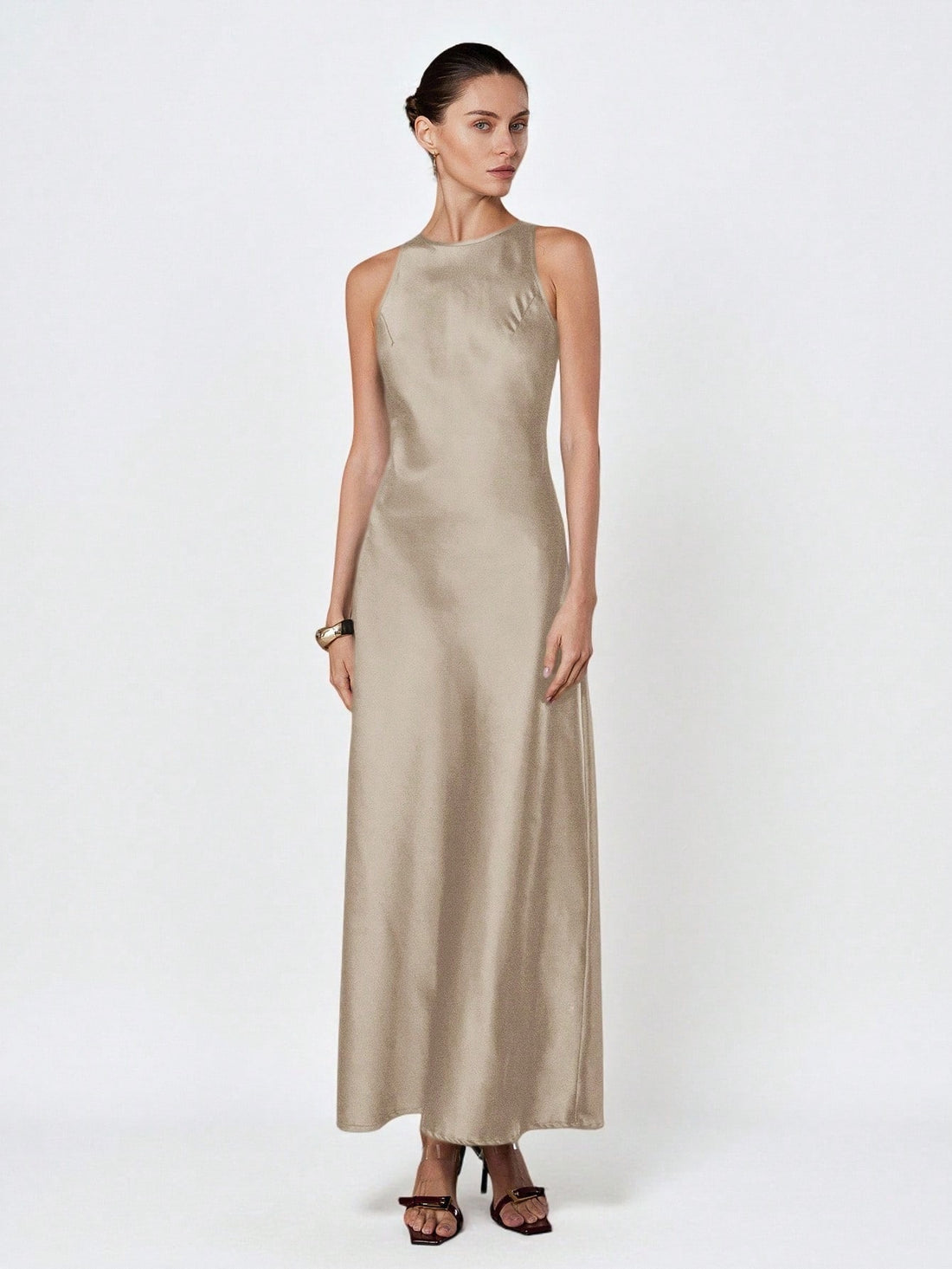 Cream sleeveless satin dress