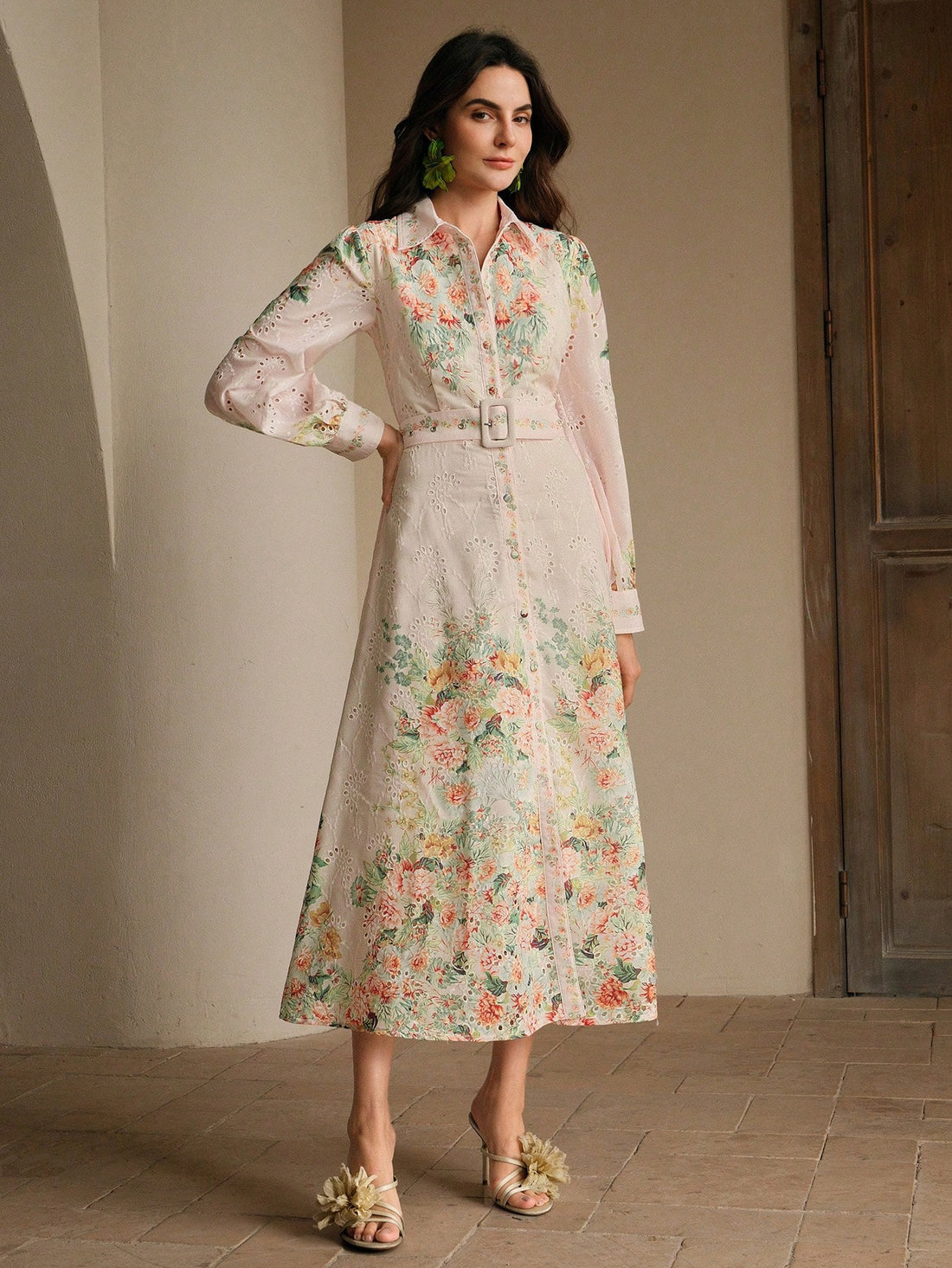 Plus Size Embroidered Lace Patchwork Long Sleeve Dress