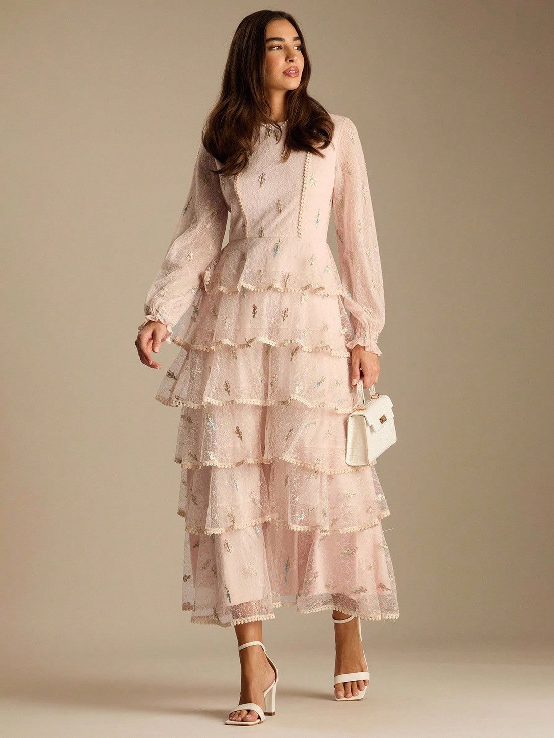Elegant lace Ruffle maxi dress (Needle and Thread inspired)