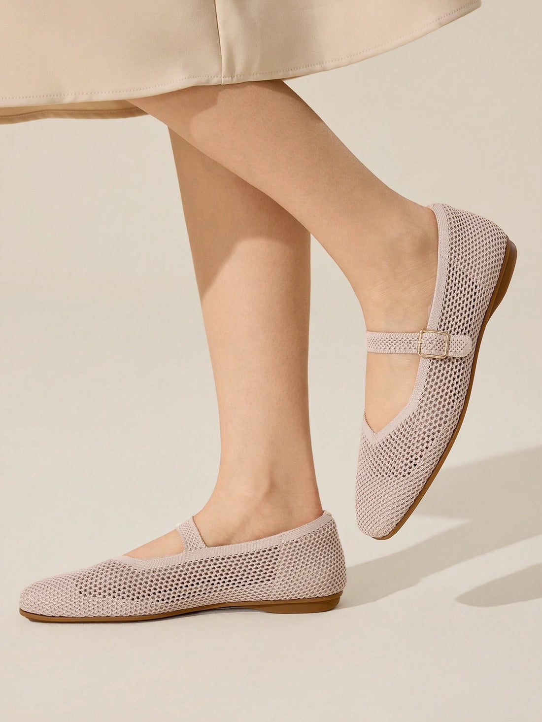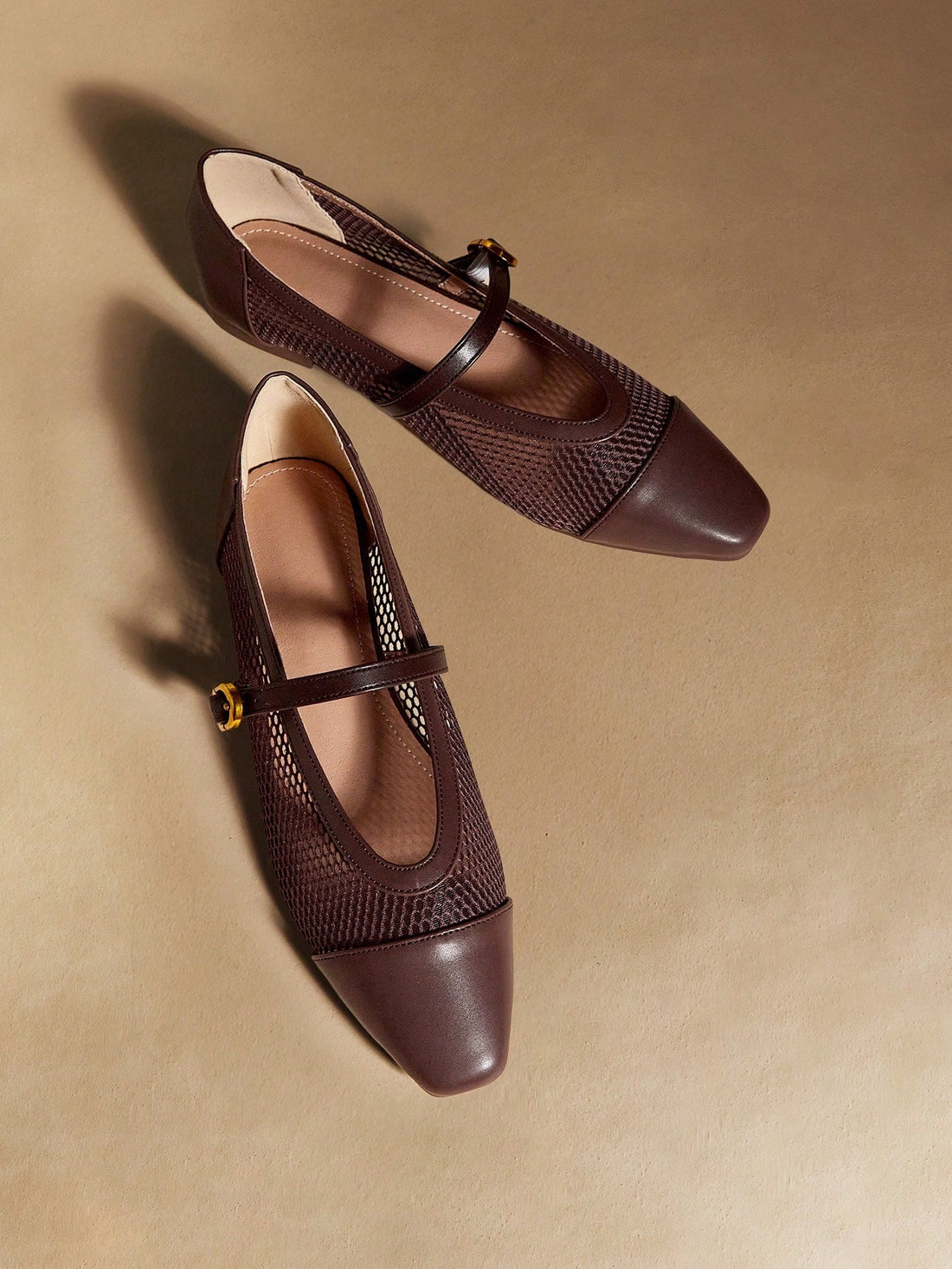 Coffee color mesh Mary Jane flats