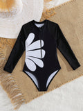 Black and white flower kids bathing suit