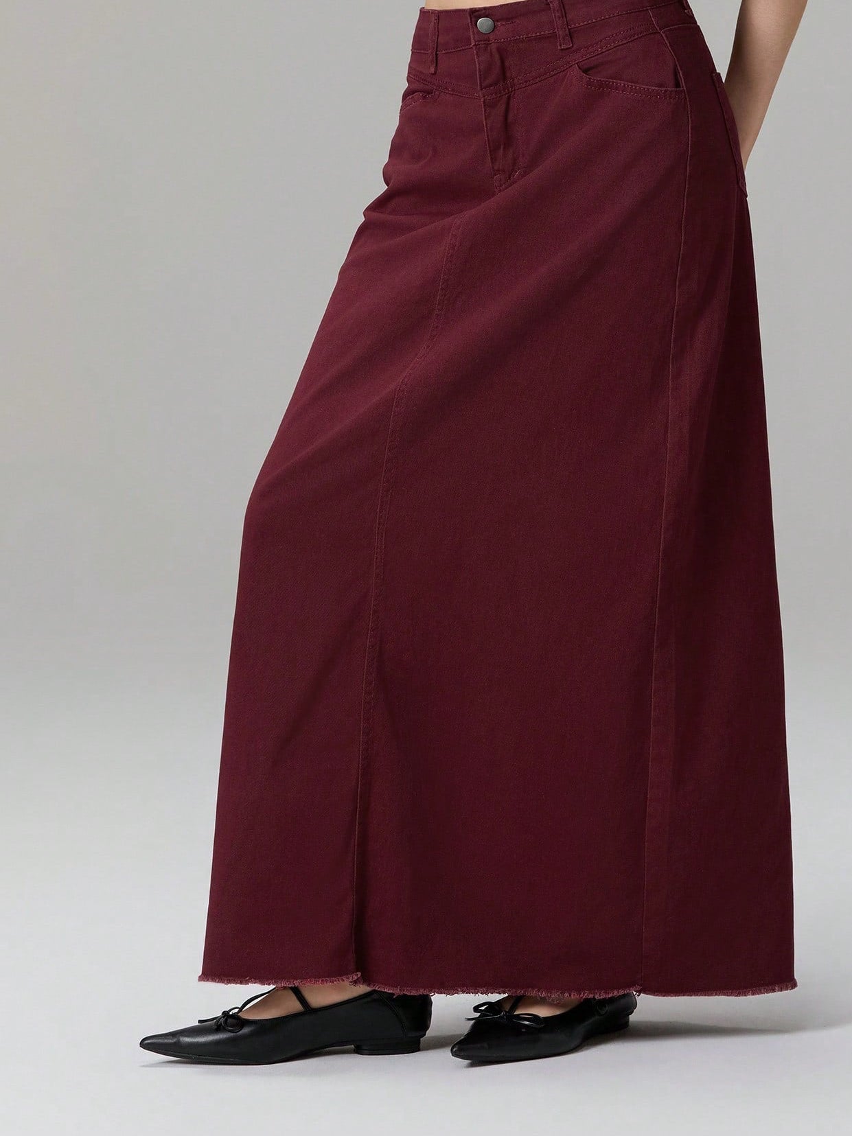Burgundy Denim Maxi Skirt