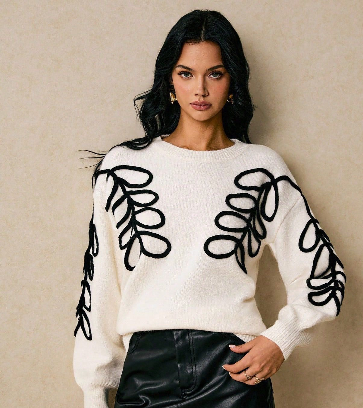 Cream appliqué sweater