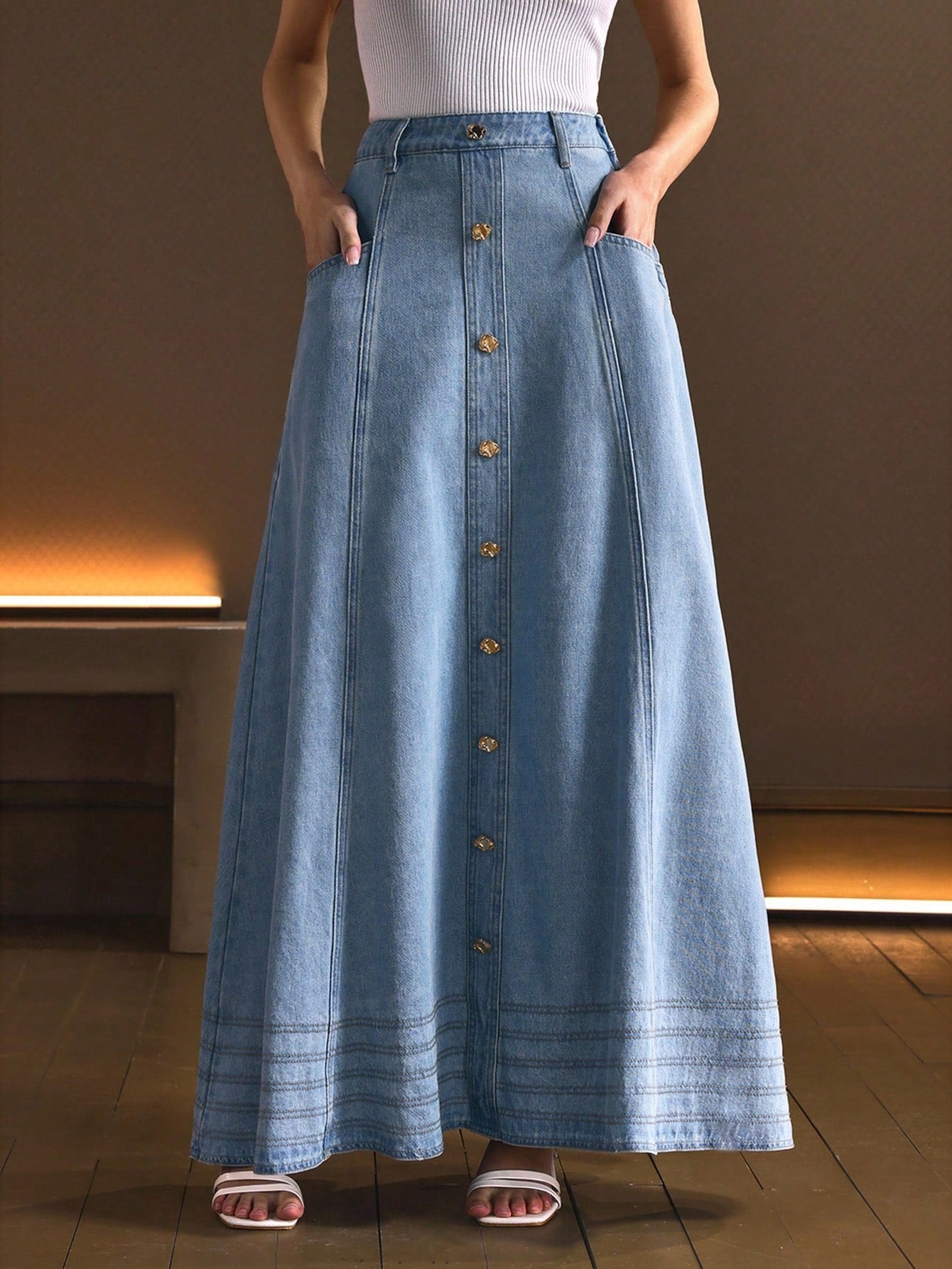 Denim pocket maxi skirt