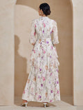 Floral print ruffle hem tie waisted dress