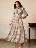 Floral print taupe ruffle dress