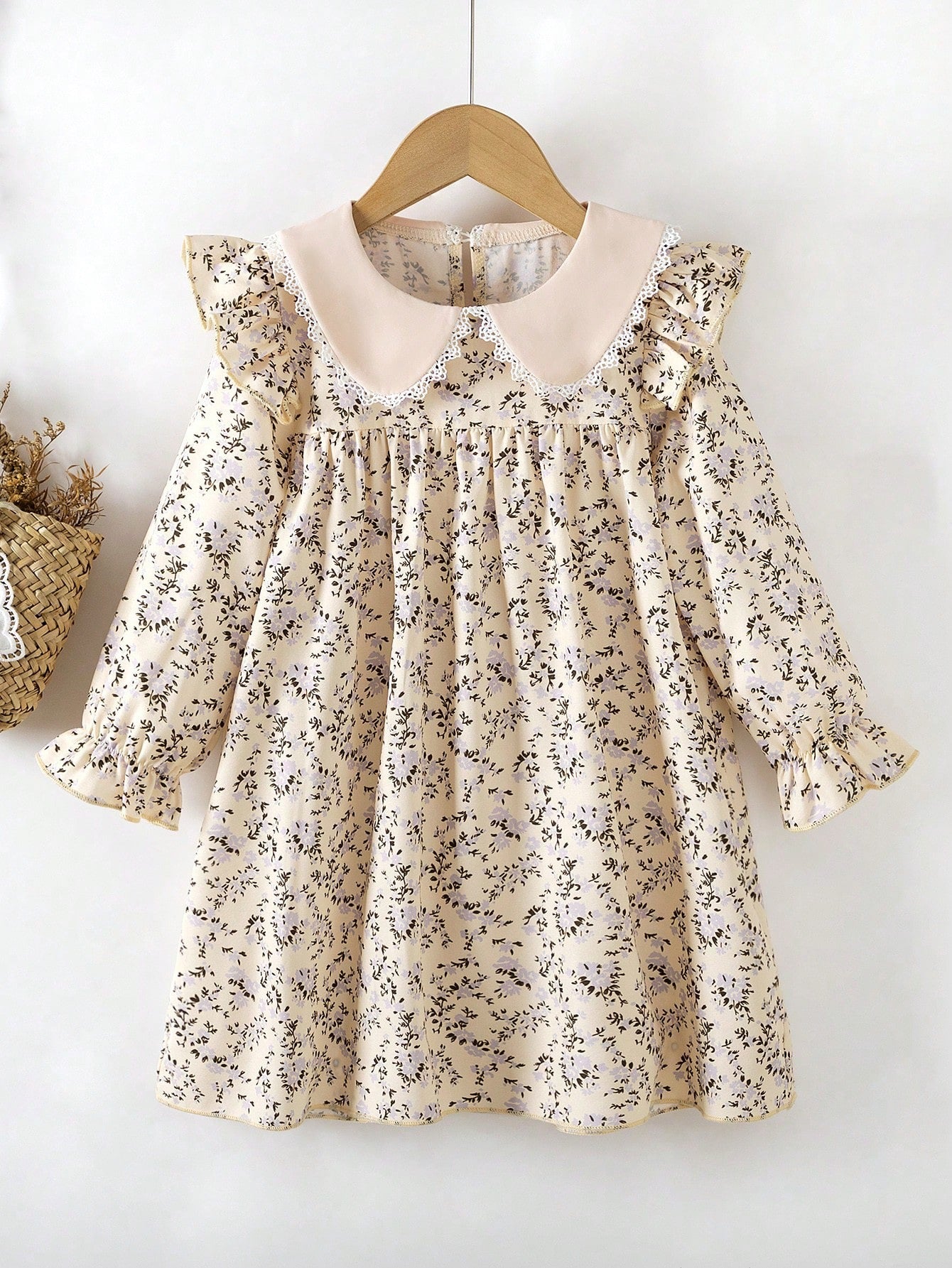 Girl beige floral dress with collar