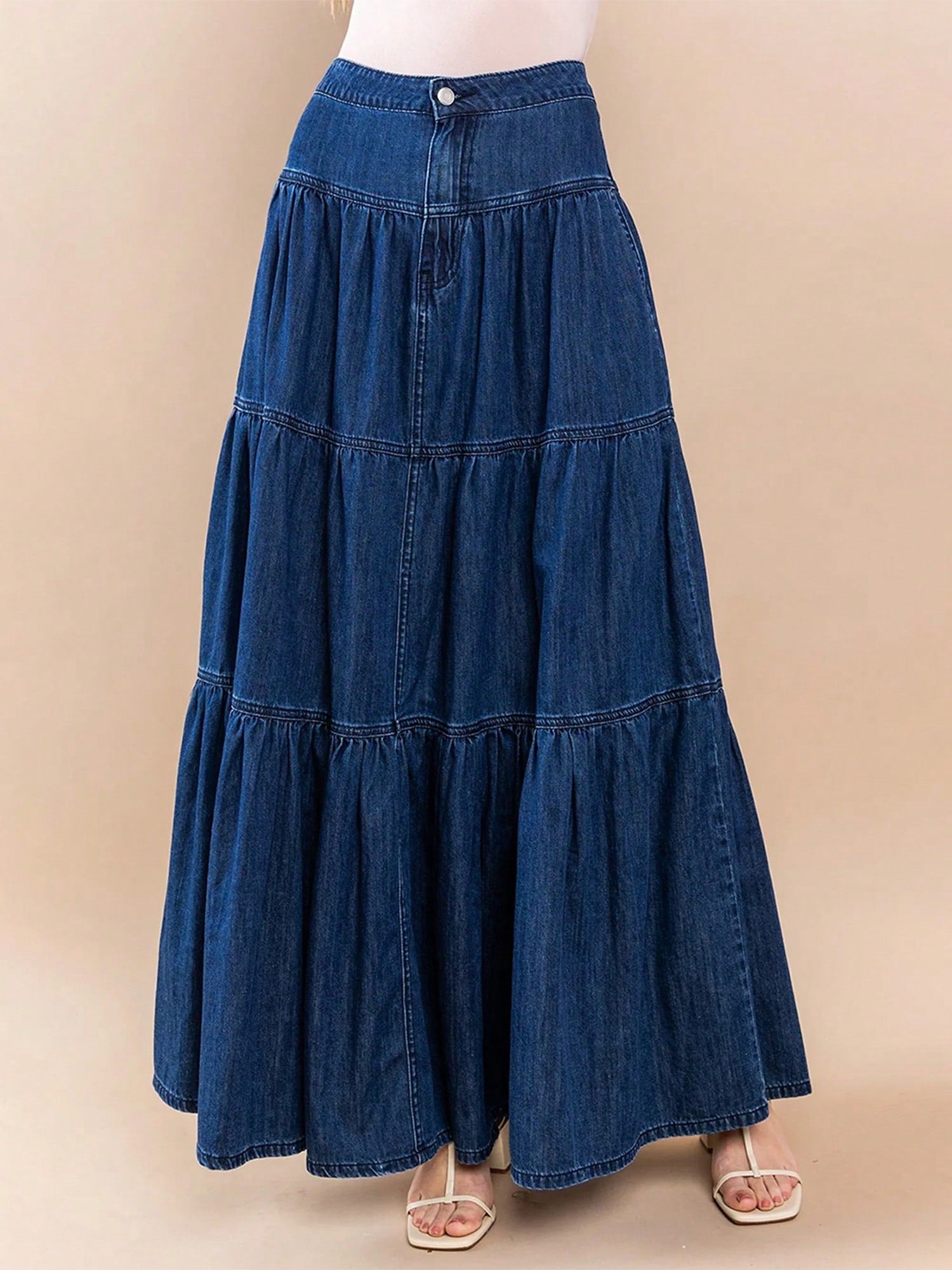 Layered denim maxi skirt