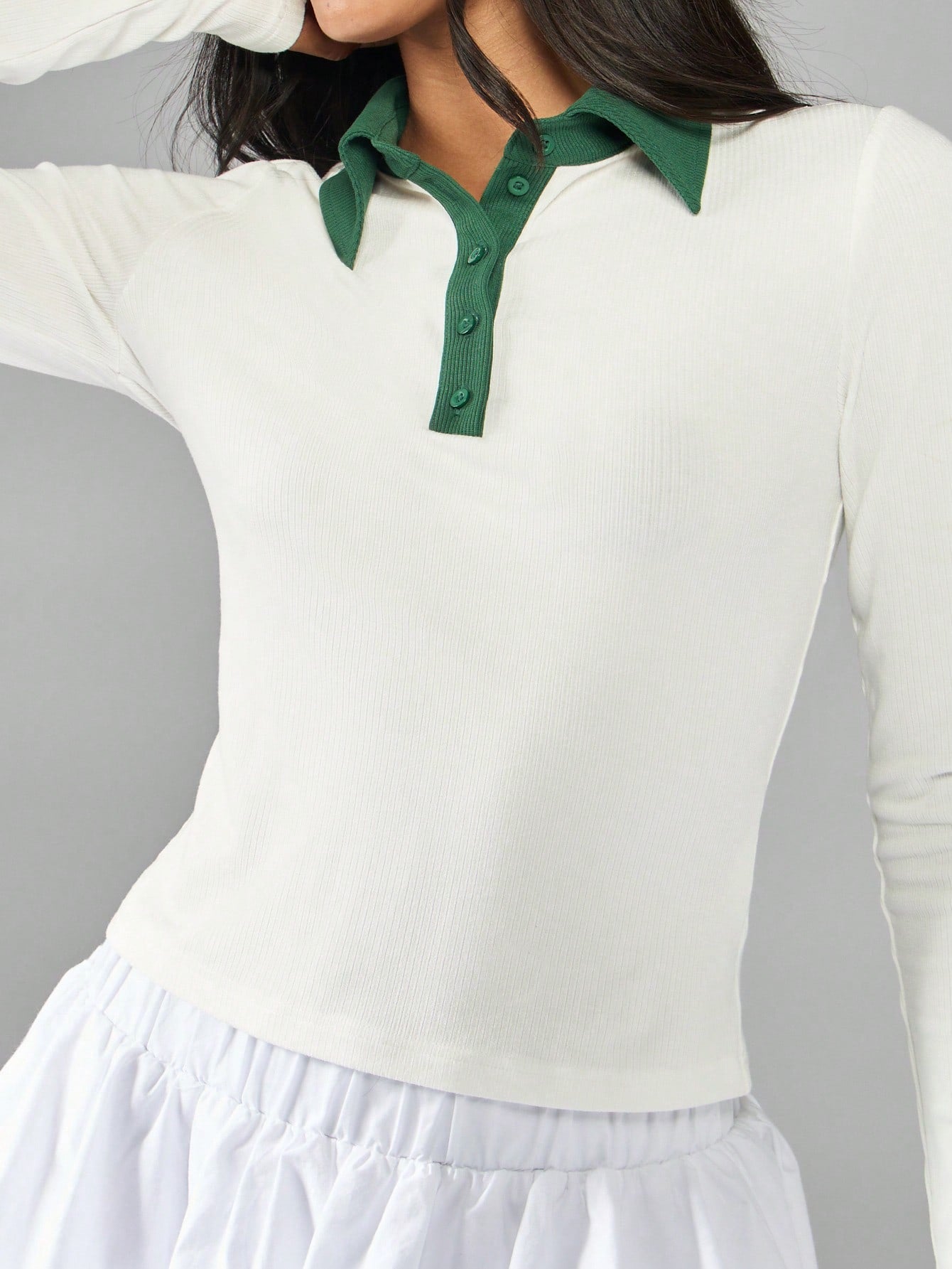MISSGUIDED Retro Tennis Inspired Long Sleeve Polo Top