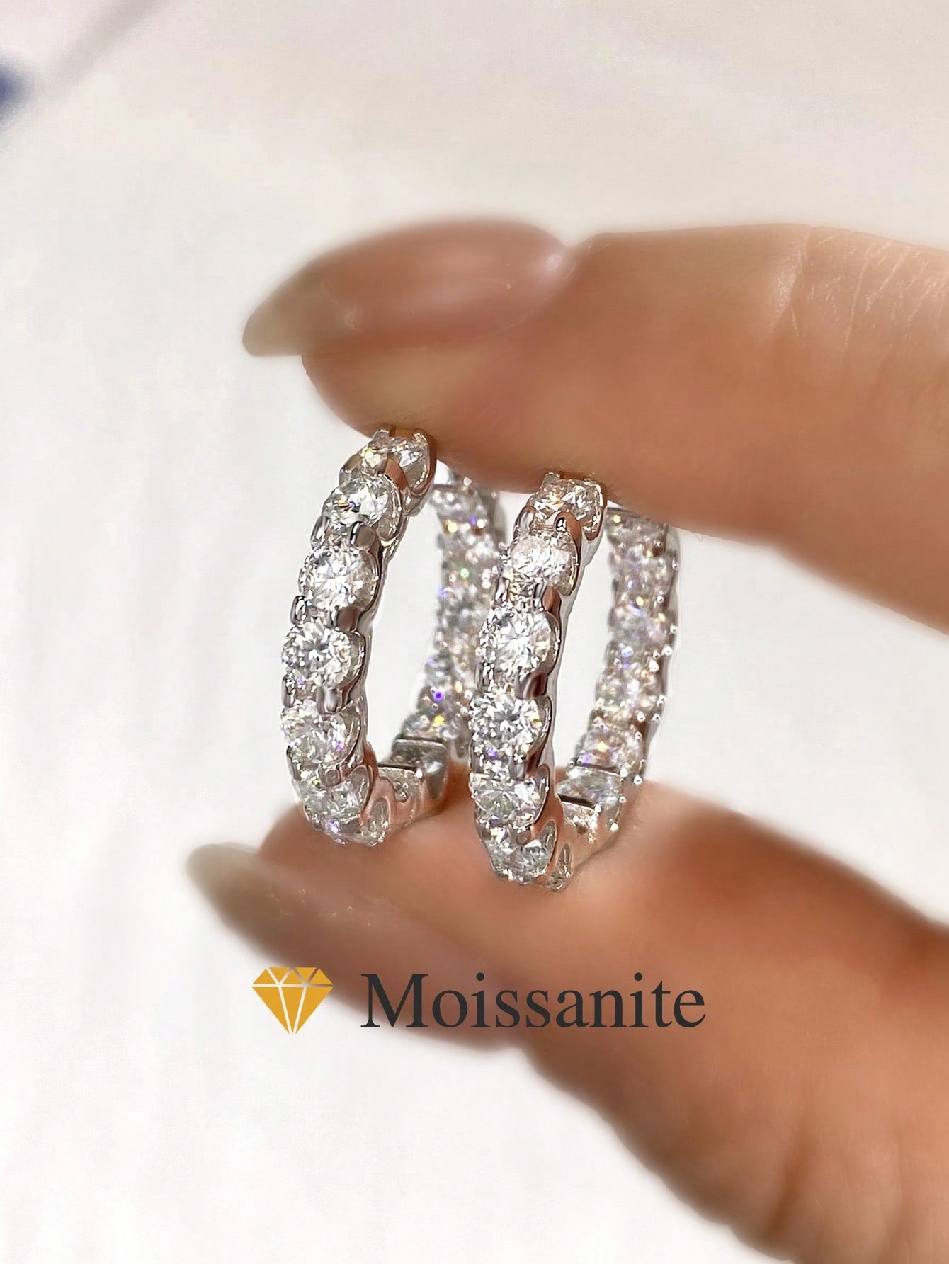 Moissanite sterling silver hoop earrings