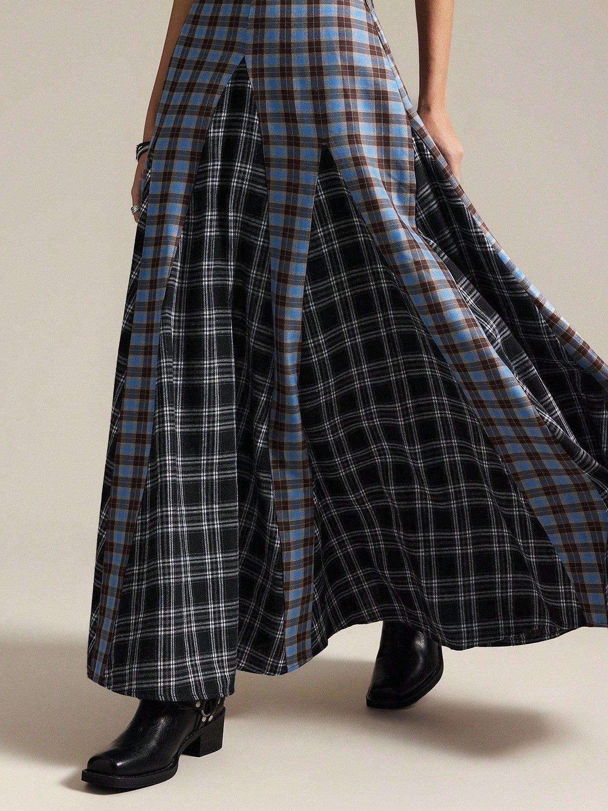 Plaid patchwork midi skirt