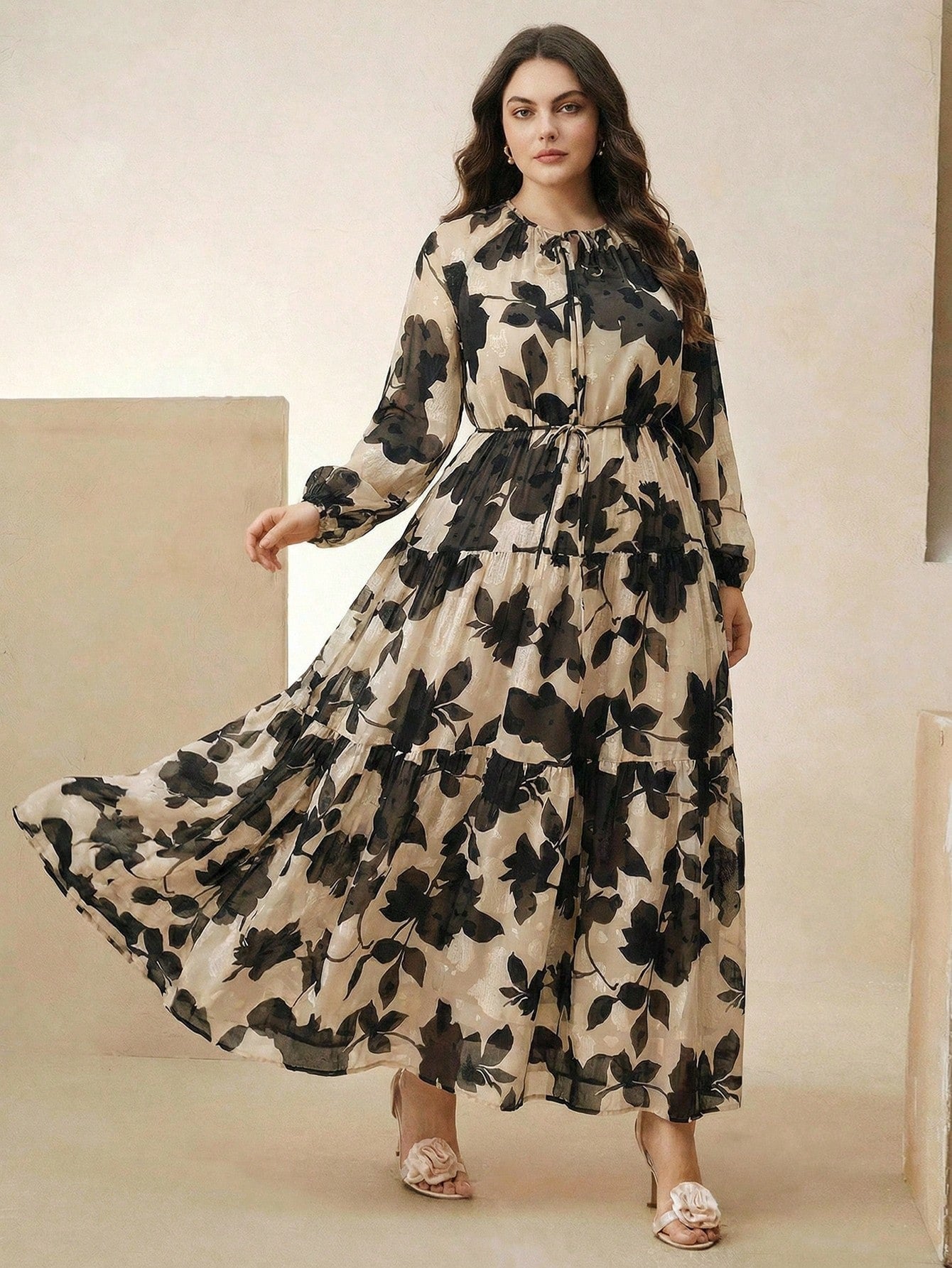 Plus chiffon black and white dress