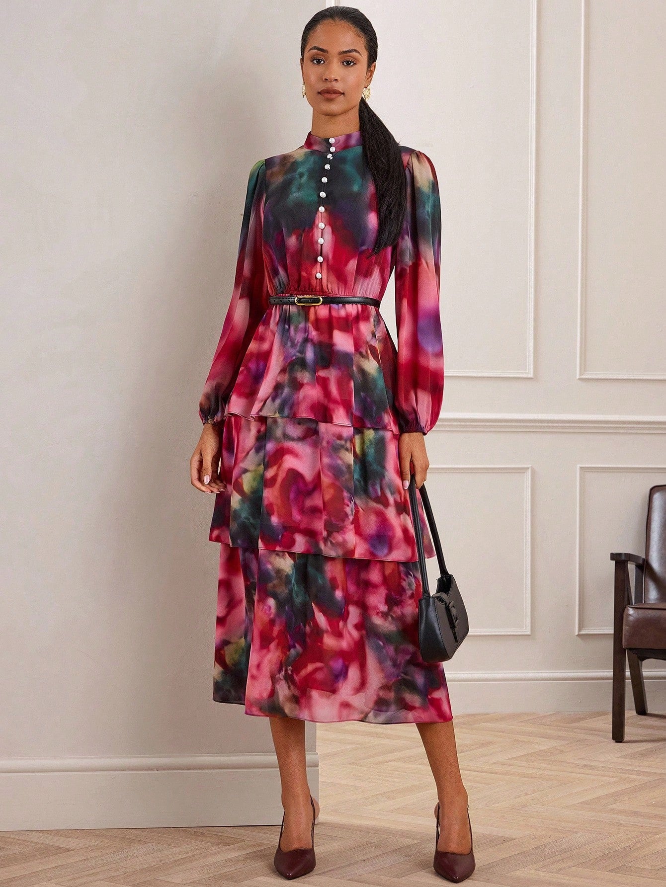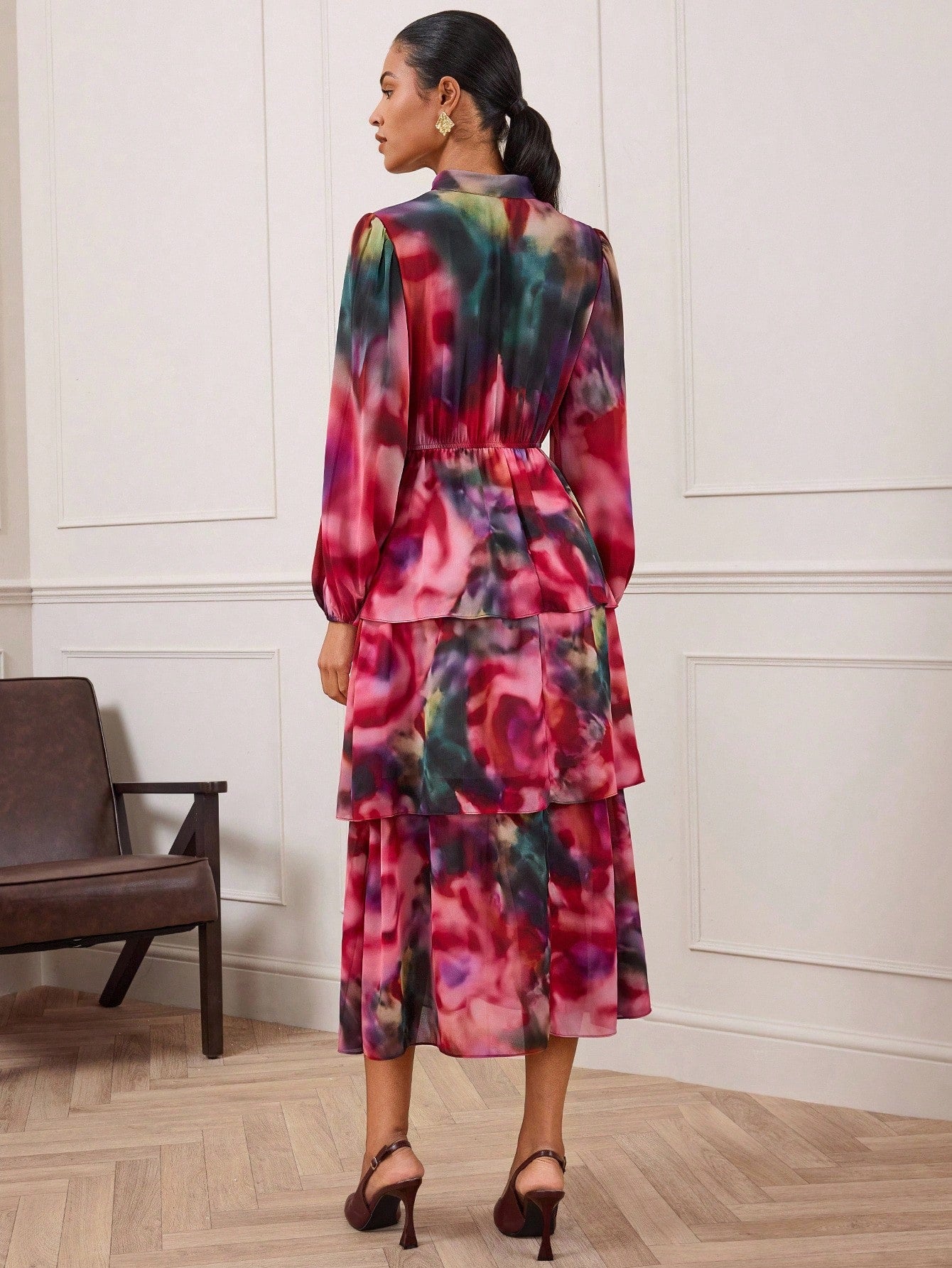 Ruffle tie dye midi dress