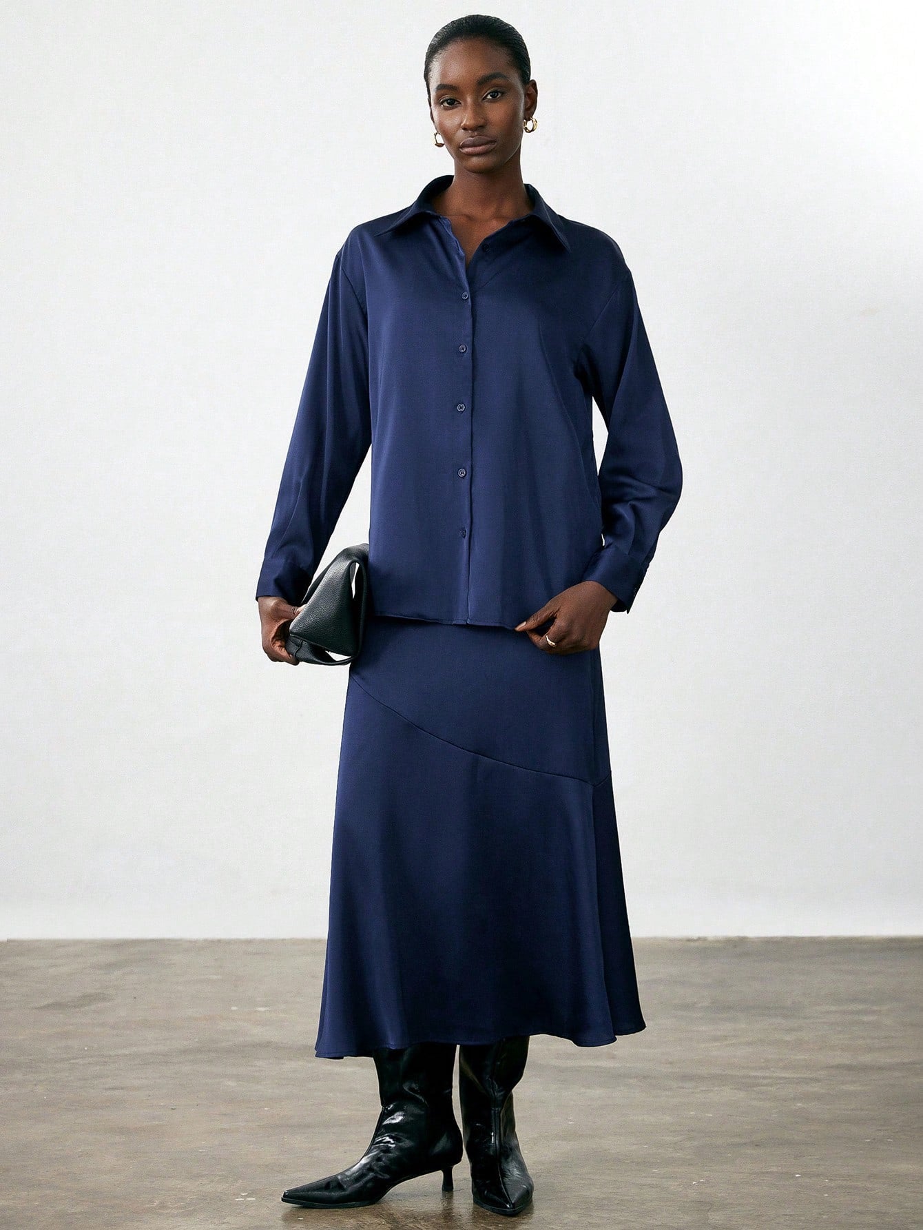 Satin shirt and skirt set