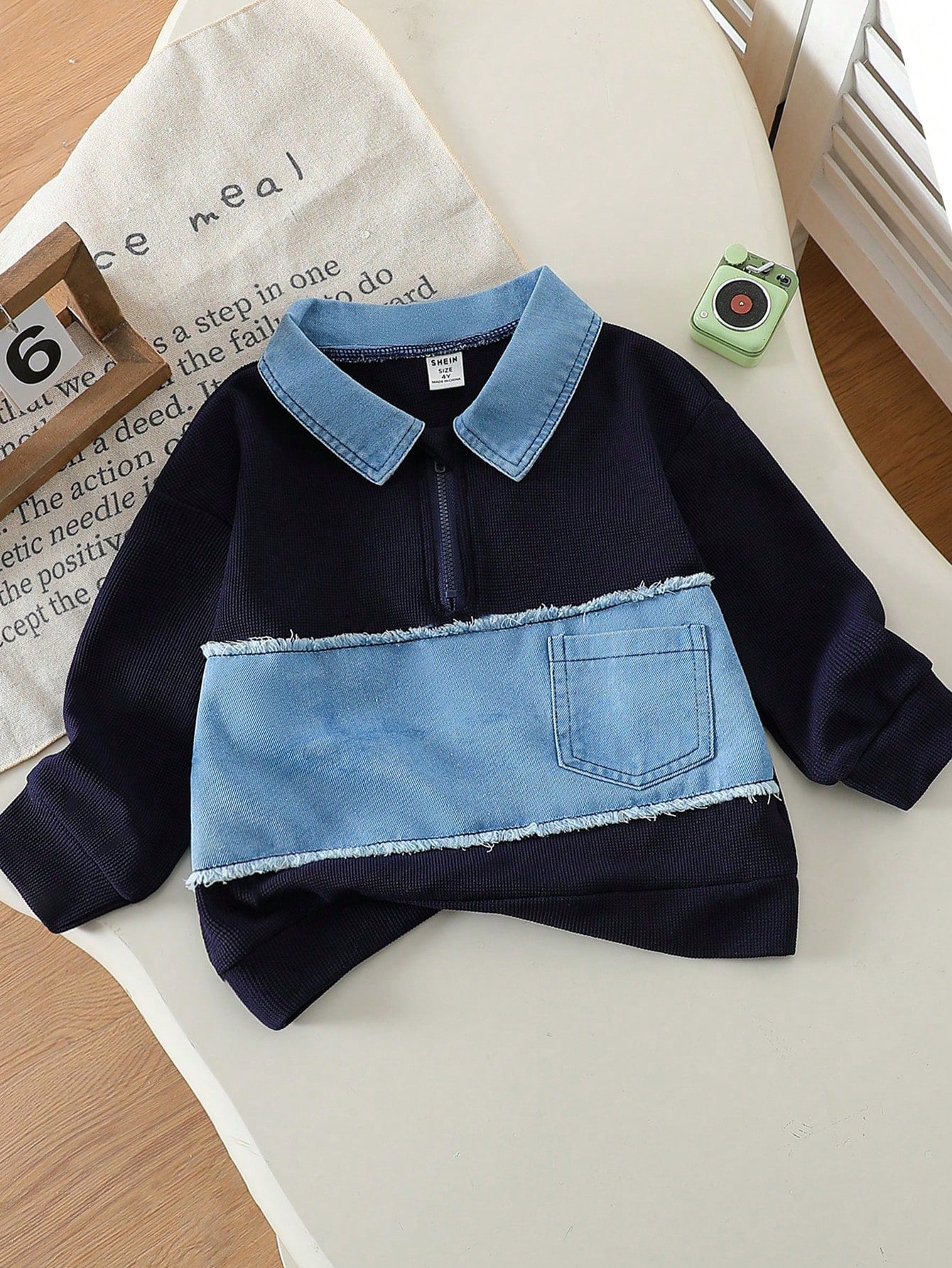 Young boy denim pocket sweater