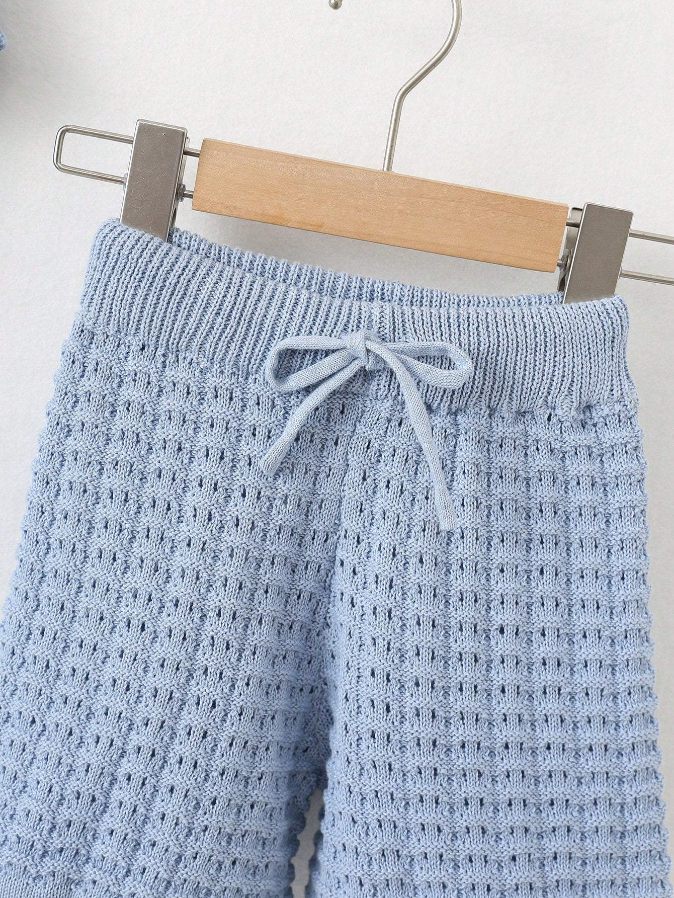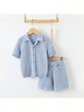 Young boys, blue knit, shirt, and shorts set
